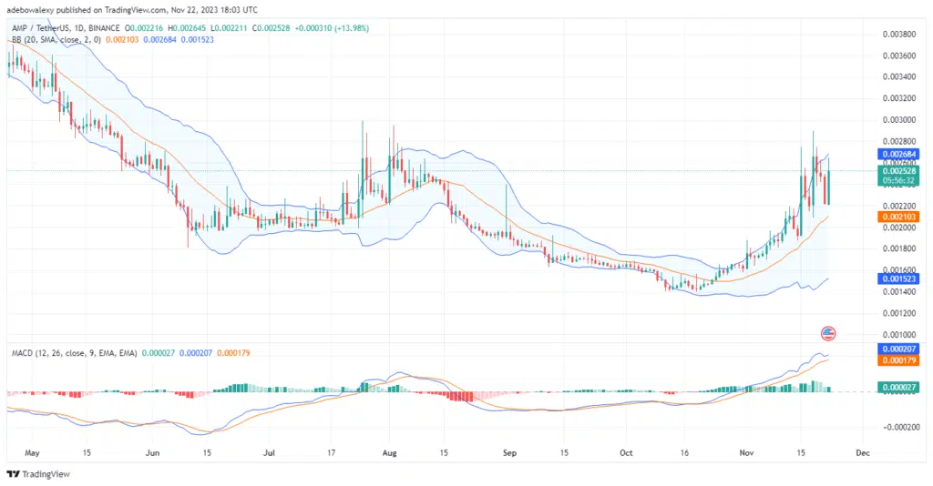 Price movements in the AMPUSDT daily market had earlier encountered headwinds in previous trading sessions when its price action tested the resistance near the two levels simultaneously. The price ceiling marks at the $0.002600 and $0.002800 levels were tested, but Amp could not sustain trading above those marks. This led to a downward correction in subsequent sessions. However, bulls are making a stand in today’s session; let’s see how it unfolds.