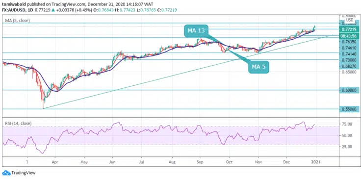 AUDUSD continued its rally and hit 0.7742, its highest level in almost 3 years, at the start of Thursday’s session. Underlying bullish sentiment in global equity markets continued to undermine the safe-haven dollar.