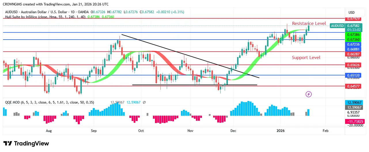 The market may return to the $0.65 and $0.64 support levels, though, if sellers are able to drive the price below the $0.66 support level. The signal is considered positive if the currency pair rises over the Hull Suite forex signals index.