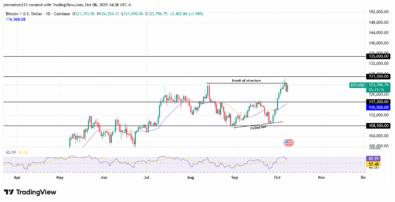 ‎BTCUSD Market Analysis – October 8 ‎Bitcoin continues to exhibit strong bullish behavior as market sentiment shifts decisively in favor of buyers, signaling renewed confidence and the potential for another historic price surge. ‎Bitcoin (BTCUSD) Key Levels ‎Support Levels: $117,300.00, $108,100.00‎Resistance Levels: $127,200.00, $135,000.00 ‎BTCUSD Long-Term Trend: Bullish ‎Bitcoin has entered a fresh phase of […]