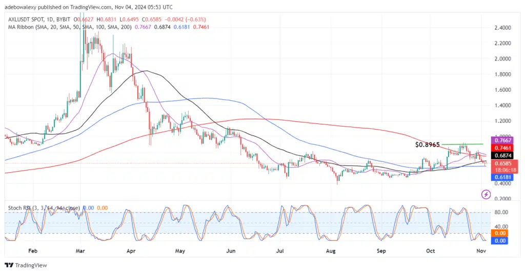 The Axelar market had earlier attempted to breach the $0.8965 resistance. However, the attempt failed, and the market retraced to lower price levels. Today, the price movement so far has only kept the price of this token sustaining just above an important landmark. Let’s examine this market for more cues concerning future price movement.