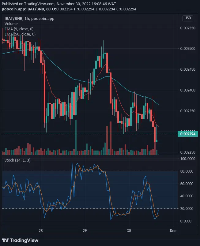 The IBATUSD pair is possibly making its way up after hitting the $0.002272 low level to signal a pump. Battle Infinity (IBAT) price may breakup the $0.002539 supply value. Thus, a strong push from the current price at the $0.002294 supply value above the $0.002519 high mark will put the crypto in a bullish trend and this may further breakup the $0.002539 resistance level which may extend the price to a $0.1000 resistance level resulting in intraday gains for the buy traders.