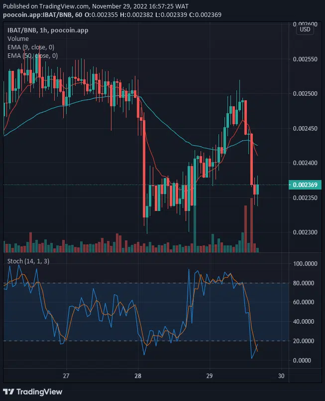 The market price of IBATUSD is currently trading at the resistance level of $0.002379; this assures or confirms the bull’s return to the market.
