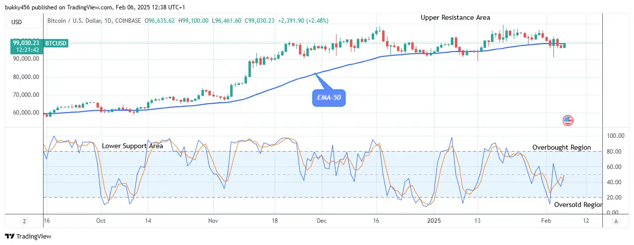 However, there is a possibility of a further increase in the price of Bitcoin if the buy traders should increase their price actions and all the current support level holds; a psychological key level at the $120k supply level might be reached soon, as it crosses the $99k in its medium-term time frame.
