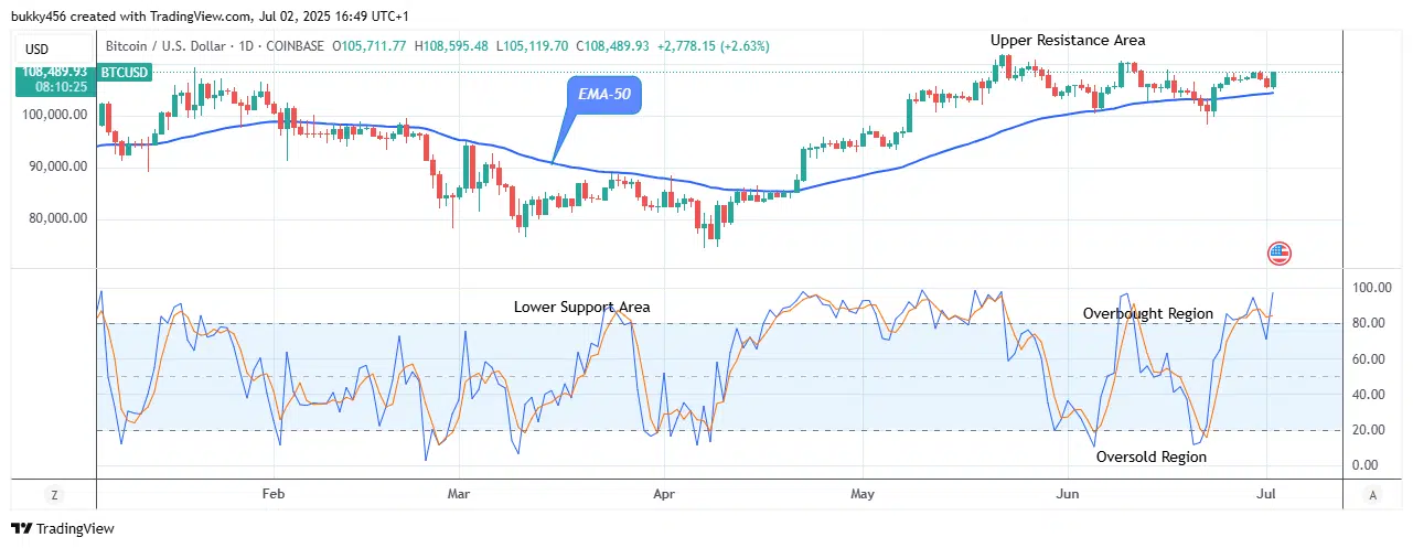 At the press time today, the Bitcoin price initiated another uptrend at the $108,595 high mark above the EMA-50, to resume the daily chart, suggesting sparking investors’ interest and momentum.