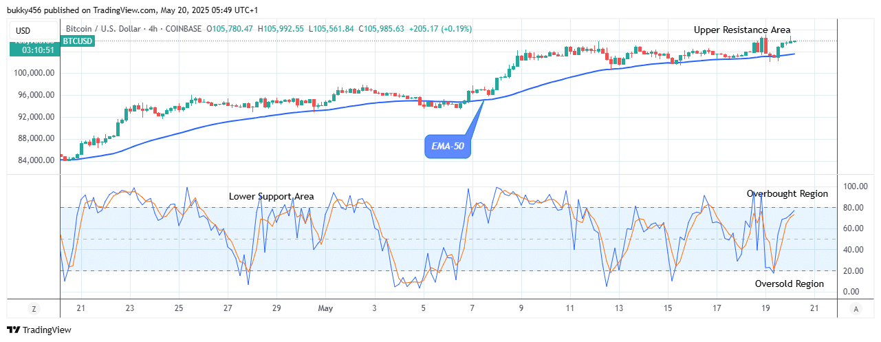 Today, BTCUSD has recently experienced a price surge, indicating an upward trend as it reaches an all-time high of $105,992, as the coin price experiences a notable price surge in its long-term perspective.