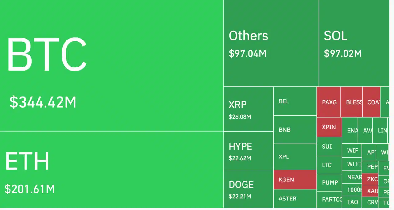 Bitcoin accounted for $344 million of total losses, followed by Ethereum at $201 million and Solana at $97 million.
