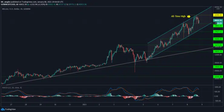 Bitcoin had another erratic trading session today after it fell from the $39k price point earlier in the day to the $36,700 support over a few hours. However, bulls were quick to step into action, sending BTC rallying once again to $42k.