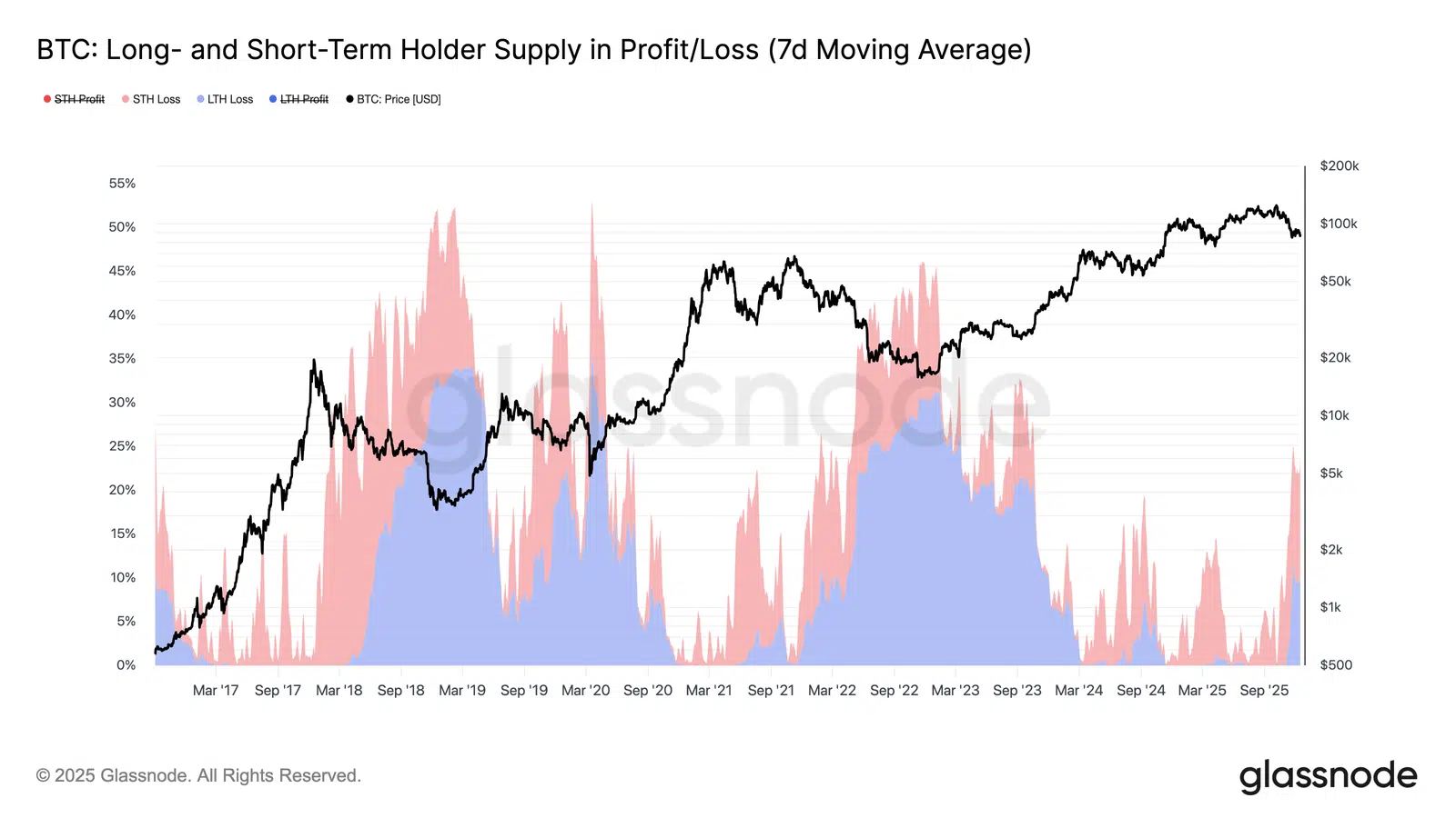 The numbers paint a concerning picture. About 6.7 million BTC are currently held at a loss, representing 23.7% of all circulating supply. This marks the highest level of underwater holdings seen this cycle.