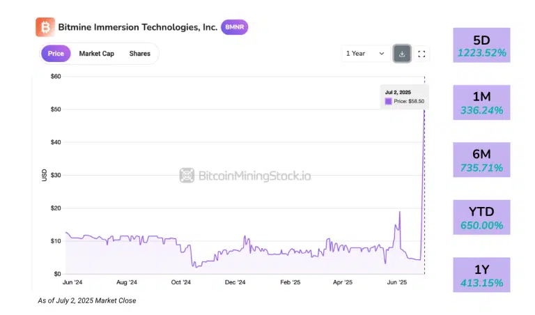 BitMine Immersion Technologies (NYSE American: BMNR) made headlines this week after its stock surged over 700% within a single day. This explosive rally was sparked by the appointment of Fundstrat co-founder Tom Lee as Chairman of the Board, signaling a bold new direction for the company. At the same time, BitMine announced a $250 million private placement to fuel an Ethereum-focused treasury strategy, drawing comparisons to MicroStrategy’s landmark Bitcoin play.