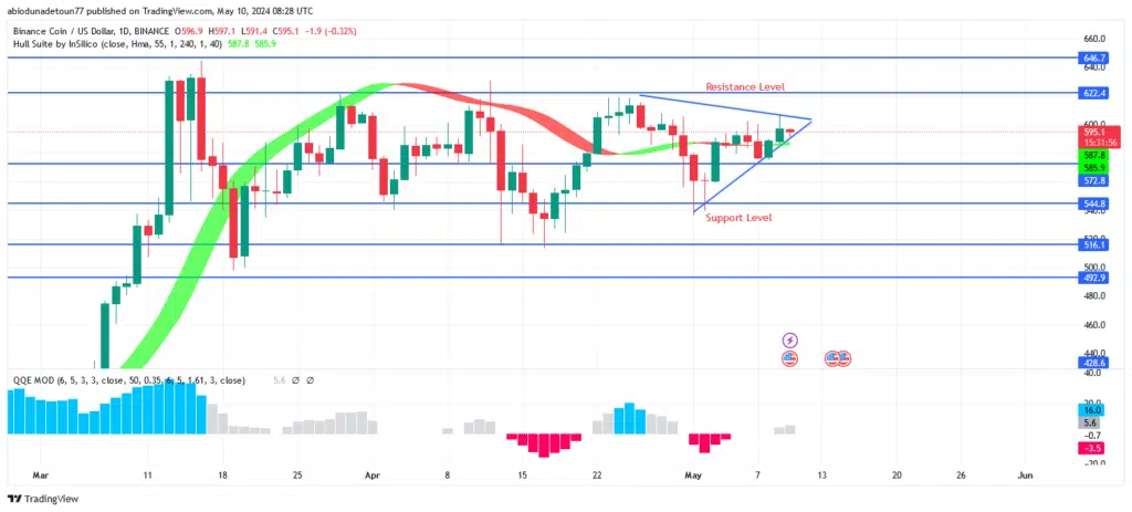BNB Price is dangling between $622 and $572 levels