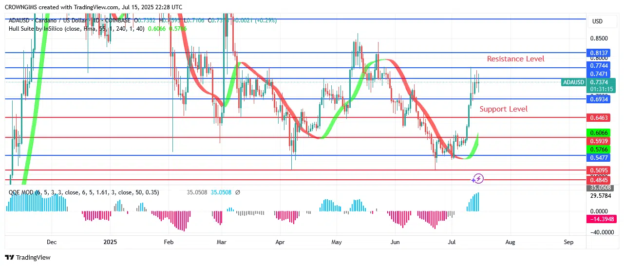 The Cardano request seems to be firmly in the bulls’ grasp. Because Cardano is currently sliding more quickly above the Hull Suite forex signals indicator, buyers are getting what they desire. Cardano can attempt testing the resistance potential of $0.89 and $0.92 if they can keep the price above the $0.78 hedge. If the $0.62 hedge is translated, the $0.51 and $0.40 support possibilities will be taken into account.
