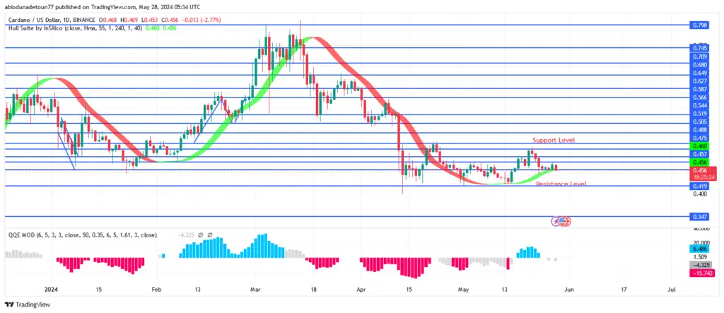 Buyers may attempt to test the resistance levels at $0.488 and $0.507, provided they can keep Cardano above the $0.476 barrier. If the $0.458 barrier is breached, consideration will be given to the support levels of $0.419 and $0.399