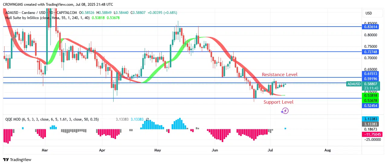 If Cardano can maintain the price above the $0.58 hedge, they can try testing the resistance potential of $0.59 and $0.72. The $0.51 and $0.50 support alternatives will be considered if the $0.52 hedge is translated.