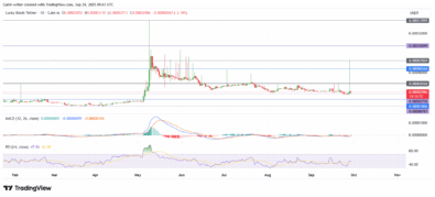 LBLOCK/USDT Price Forecast – September 30, 2025 Lucky Block price forecast shows the market remain locked in a prolonged accumulation phase. Lucky Block Key Levels Support Levels: $0.00002750, $0.00001806Resistance Levels: $0.00004268, $0.00006566 Lucky Block Long-Term Trend- Bullish (Daily Chart) The market structure suggests the pair is trading within a large Mitigation Block, having corrected deeply […]