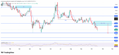 Market Analysis – October 17 USOil extends its downside momentum amid growing bearish pressure. The commodity continues to display persistent selling interest, supported by technical indicators that confirm weakening market strengt. Currently, the price trades below the 9-day simple moving average, signaling a clear short-term downtrend. Additionally, the RSI remains below the neutral 40 level, […]