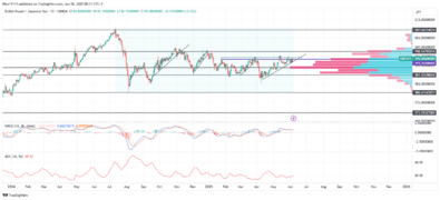 Market Analysis – June 9 GBPUSD faces a period of temporary weakness before momentum for a bullish continuation resumes. Technical indicators suggest a possible short-term cooling in buying pressure. Although the MACD remains in bullish territory, the convergence of the MACD line (blue) with the signal line (orange) indicates weakening momentum, potentially signaling an impending […]