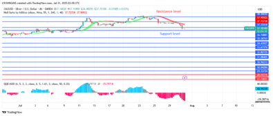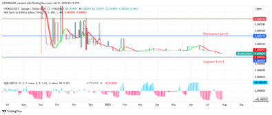 Buyers are increasing everyday SPONGEUSDT Price Analysis – 31 July If the resistance level of $0.000145, followed by the barrier levels of $0.000196 and $0.000330, is broken, the bullish momentum will be reinforced. It could rise above $0.000330 if the bulls keep pushing. SPONGEUSDT Market Key levels: Resistance levels: $0.000145, $0.000196, $0.000330 Support levels: $0.000081, […]