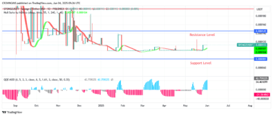 Sponge is increasing SPONGEUSDT Price Analysis – 04 June If the resistance level of $0.000145, followed by the barrier levels of $0.000196 and $0.000330, is broken, the bullish momentum will be reinforced. It might rise above $0.000330 if bulls keep pushing. SPONGEUSDT Market Key levels: Resistance levels: $0.000145, $0.000196, $0.000330 Support levels: $0.000081, $0.000040, $0.000021 […]