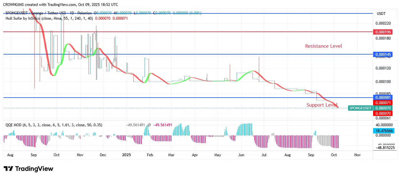 Sponge (SPONGEUSDT) $0.000145 Resistance Point May Change to Support