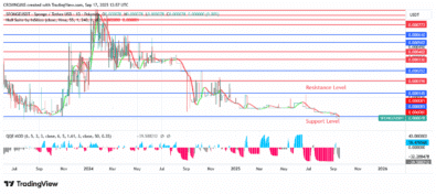 Further declination of price in TRON market TRON Price Analysis – 17 September The price of TRON may be prepared to surpass the $0.36 and $0.37 barriers if the buying momentum persists past $0.34. If the price stays below $0.33, it can approach the $0.32 and $0.30 scripts. Key Levels: Resistance levels: $0.34, $0.36, $0.37 […]