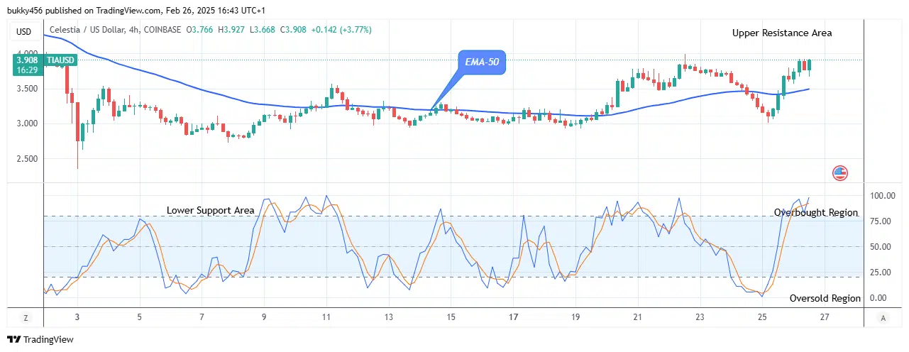 Additionally, the price of Celestia might continue to bounce up if the bulls could push harder. Due to this, the token price might bounce up to the $4.00 upper resistance level in the upcoming days in its higher time frame.