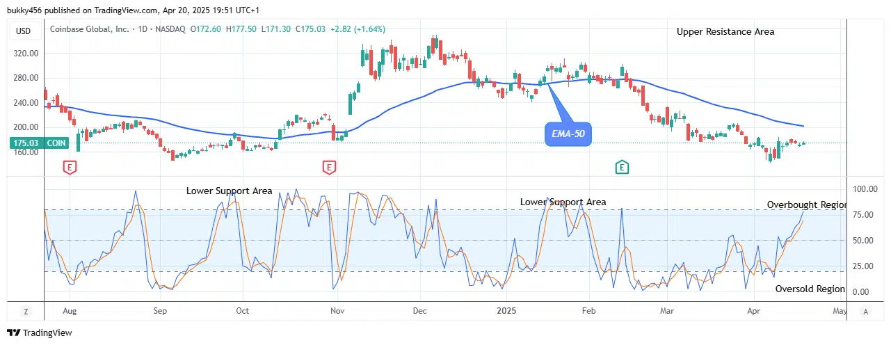 Further, $COIN price could reverse to another uphill trend if the bulls can exchange hands with the bears at the $173.48 low point.