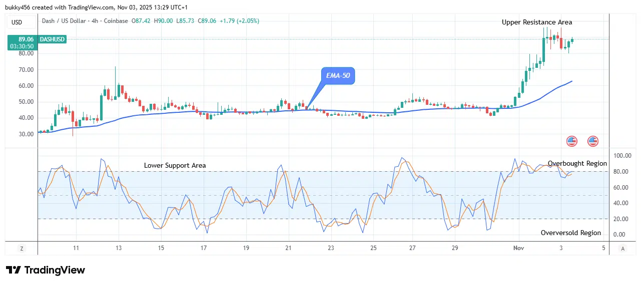 Additionally, the price of Dash may increase further if the bulls push harder. In light of this, the token price could bounce up to reach the $100.00 upper resistance level in the near days and beyond in its higher time frame.