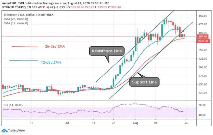 The upward move is likely to resume since the support is holding. A strong bounce above the support will propel the price to resume the upward move. A retest at $440 is likely. If price breaks the resistance, Ether will rise to $480 high. On the other hand, where the bulls fail to break the resistance, ETH may fall or be compelled to a sideways move.