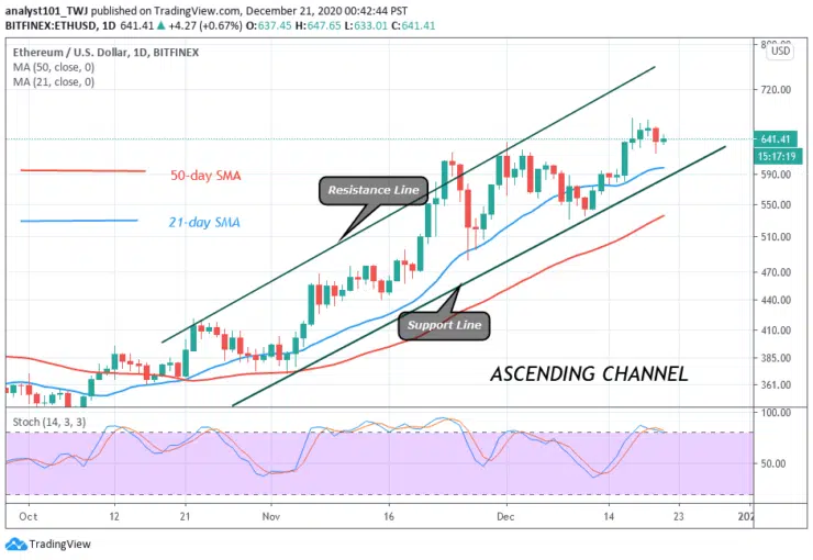 After overcoming the $620 overhead resistance, the biggest altcoin has moved up to $670 high. Presently, the crypto is facing resistance at the recent high as the coin resumes sideways move.