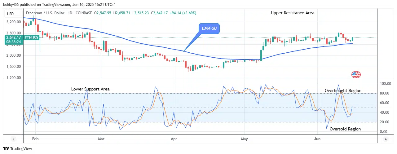 The Ethereum price trading above the moving averages at the $2,658.71 resistance level as the daily chart opens today is an indication of a more bullish impact in the market.