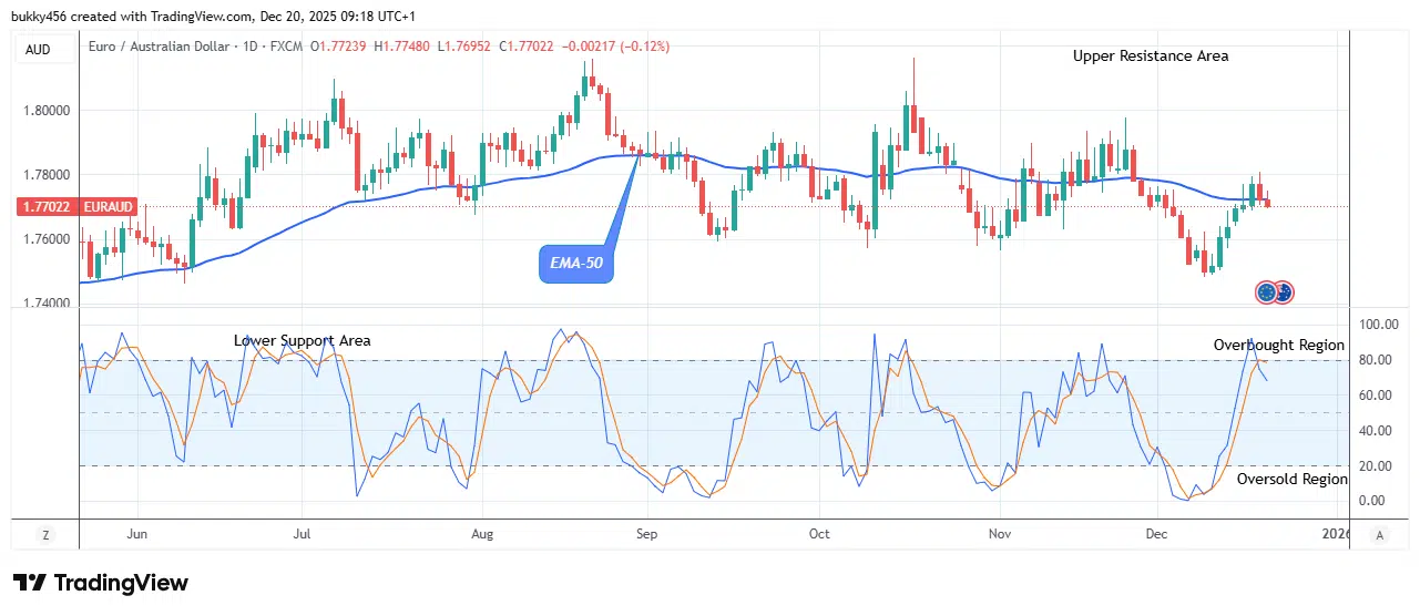 Additionally, the currency pair is oversold. Hence, if the bulls increase their confidence in the EURAUD investment, the price could see another trend by reversing from the $1.77 current support mark and hitting the $1.81 upper resistance barrier, attracting big players to drive the price higher in the days ahead in its medium-term outlook.