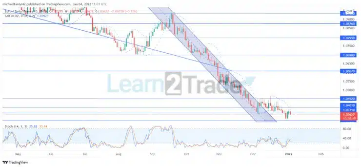 Bears have been on a free course in the market right from the beginning of the last quarter of the year 2021. During this period, the fall in the price was through a descending channel and violated all key levels and barricades found along the line path. This continues till the bulls grew stronger and strengthened at the 1.03710 support level to put a stop to the plunge in price and break out of the descending channel.