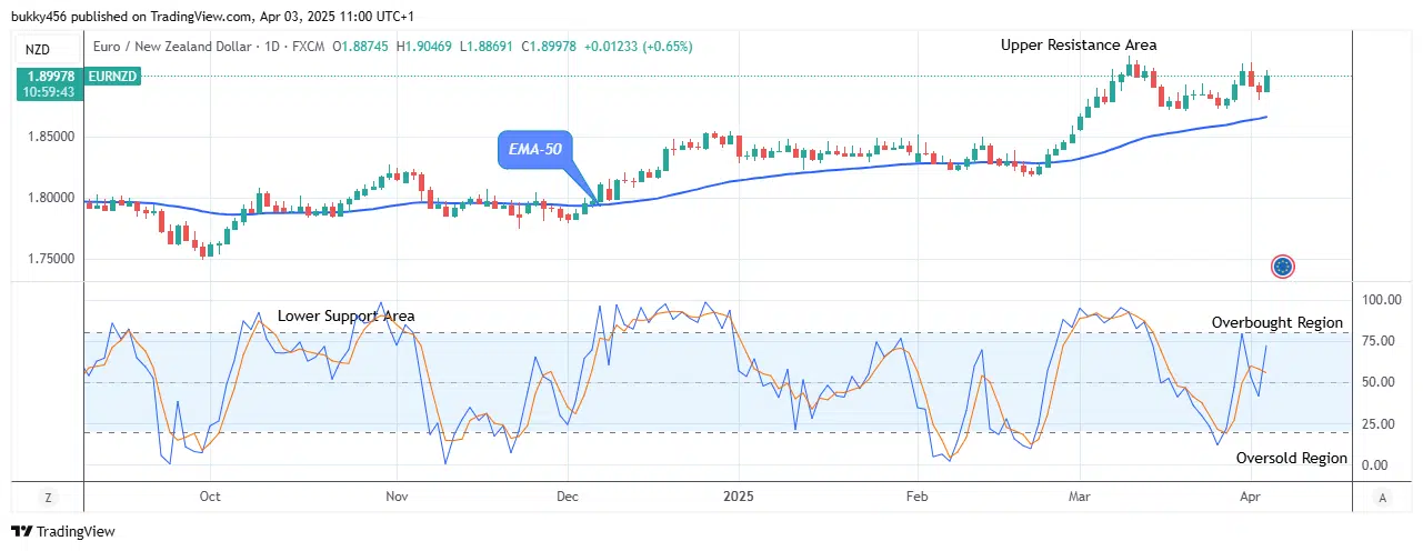 Similarly, the momentum indicator also signaled an uptrend. Buyers are expected to continue with the trend; in this case, the price of EURNZD might reach the $1.92 resistance value in the coming days in its long-term perspective.