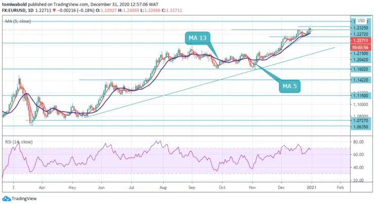 On the other hand, a break of the 1.2150 support level is needed to mark a short-term peak. However, the short-term trend could remain bullish in the event of a pullback. However, sustained trading outside the near 1.2272 level and the 13 moving average gives EURUSD buyers the hope that they will be watching the uptrend line from the end of November.