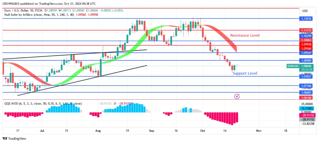 Sellers may be able to drive the price down to the $1.06 and $1.05 barrier levels if they can break through the support level at $1.07. Prices may rise over the resistance levels of $1.09 and $1.10 if buyers are able to keep the price above the $1.08 barrier.