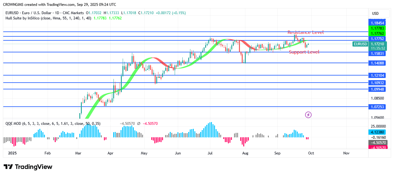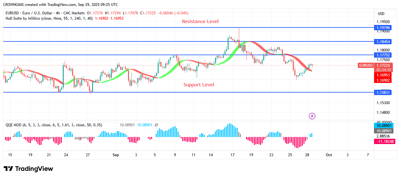 The Hull Suite indicates that the market is inclining in accordance with the forex signal’s suggestions. If buyers can break through the resistance level at $1.17, they might be able to push the price up to the $1.18 and $1.19 barrier levels. Prices may go below the $1.15 and $1.14 support levels if sellers are able to keep the price below the $1.16 barrier.