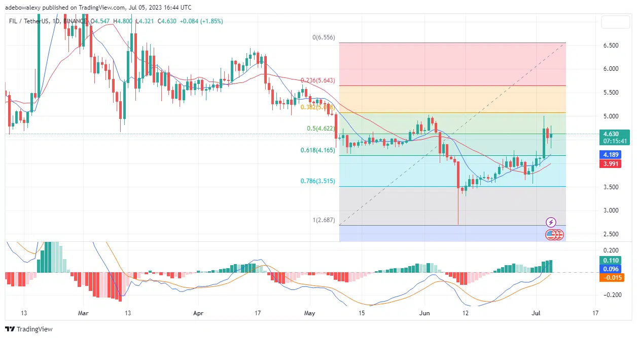 Although price action in the FILUSDT daily market has faced upside rejection in the just concluded session, it appears that buyers are seeking to extend the upside retracement.