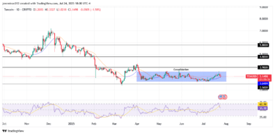 BGB/USDT Price Analysis – July 24 Bitget Token struggles for direction within its long-term range, with sellers taking control of the short-term trend after a recent rally failed to sustain momentum. The market remains locked in a wide, indecisive trading range, with the latest rally attempt being thwarted by sellers. This has led to a […]