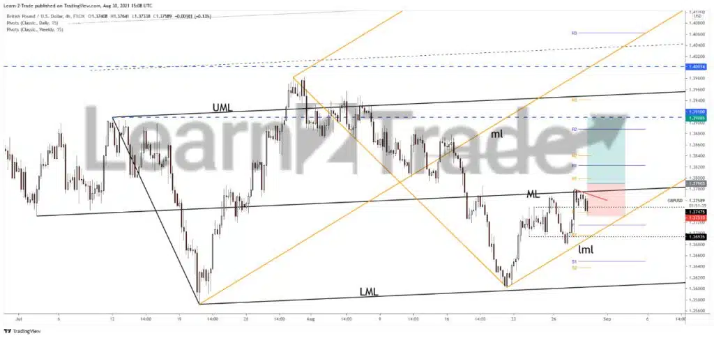 GBP/USD has decreased a little after reaching the median line (ML). The median line was seen as a dynamic resistance. Now, it has found support in the daily pivot point (1.3738) level. Technically, making a valid breakout through the median line (ML) could signal an important upwards movement.