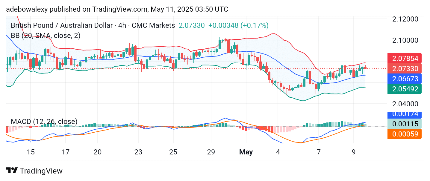 The GBPAUD market maintains a general upward trend even in the smaller time frames. However, the most recent price candle shows a slight downward retracement based on its appearance. Nevertheless, trading activity remains above the middle Bollinger Band.