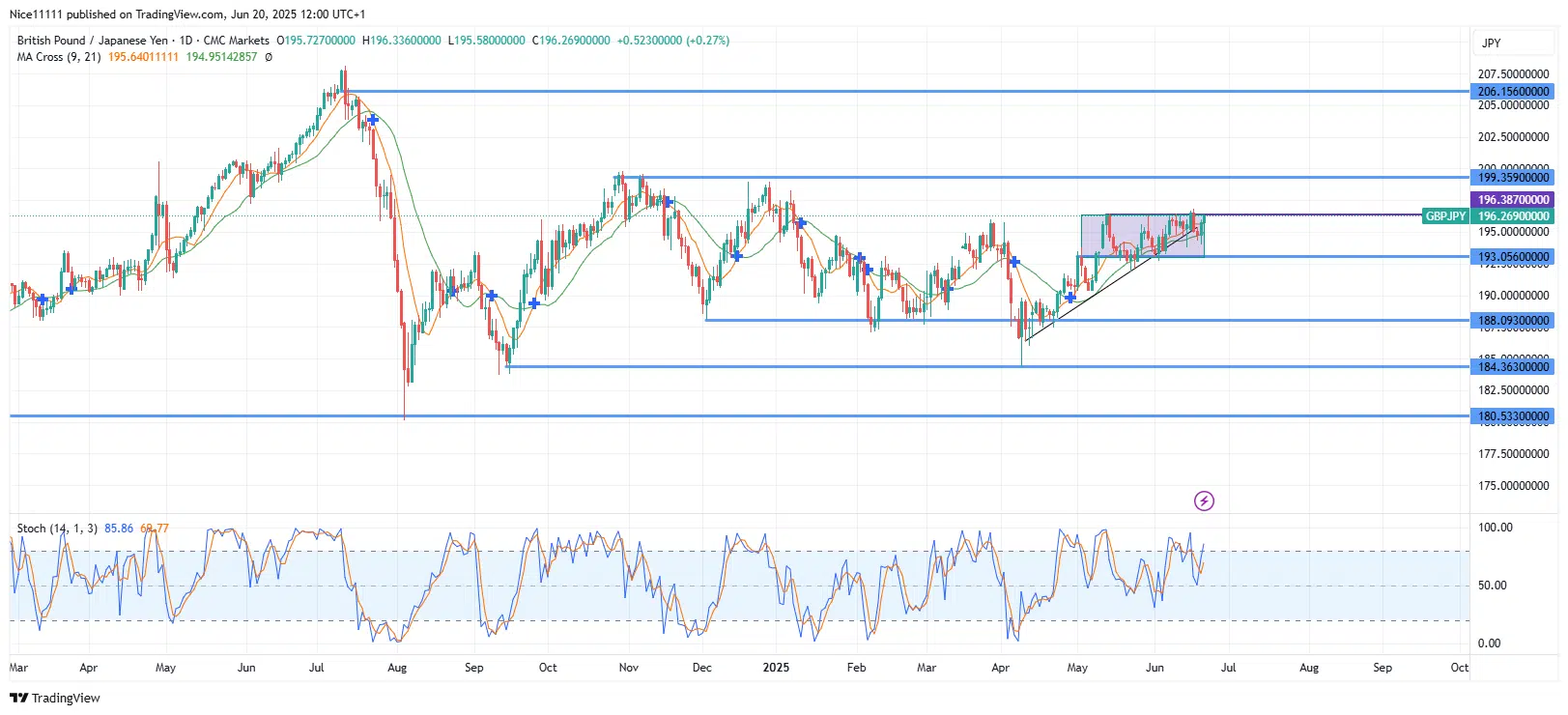 Currently, GBPJPY exhibits clear ranging behavior with well-defined boundaries visible across timeframes. The market appears to be consolidating as it approaches the 199.360 level. Forex signal providers and technical traders are closely monitoring this zone, anticipating a potential breakout that could see the price test lower resistance targets if bullish momentum resumes. The Triple Top formation at 196.270 warrants caution, as it often precedes trend reversals when confirmed. Traders should remain alert as a decisive breakout would confirm the continuation of the broader uptrend.