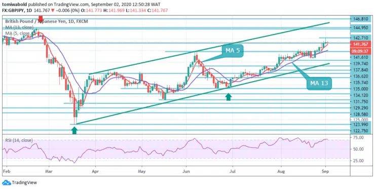 As such, the pair could witness a pullback to the psychological support level of 141.00, which, if violated, would shift the focus down south. Meanwhile, the firm break of 147.95 level will raise the chance of long term bullish reversal. Then its focus will then be turned to the 156.59 resistance level for confirmation.