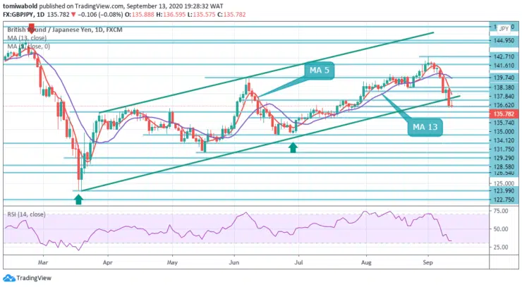 After trading as low as 135.57 during the end of the prior week, the currency edged a little higher and found support at 135.74 level. After having been unable to move lower than 135.57 in the prior session, GBPJPY is likely to find buyers again around the same price level today at 135.57 level.