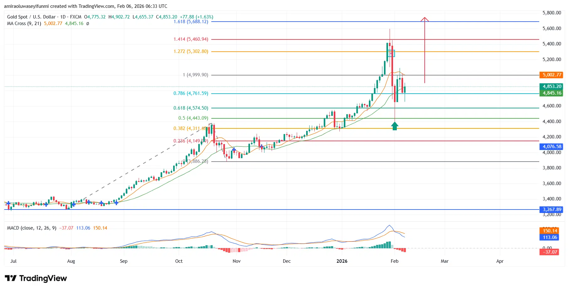A sustained reclaim above $4,900 would likely trigger upside continuation toward the $5,300–$5,400 resistance zone, keeping the technical outlook aligned with prevailing forex signals as long as price remains supported above $4,600.