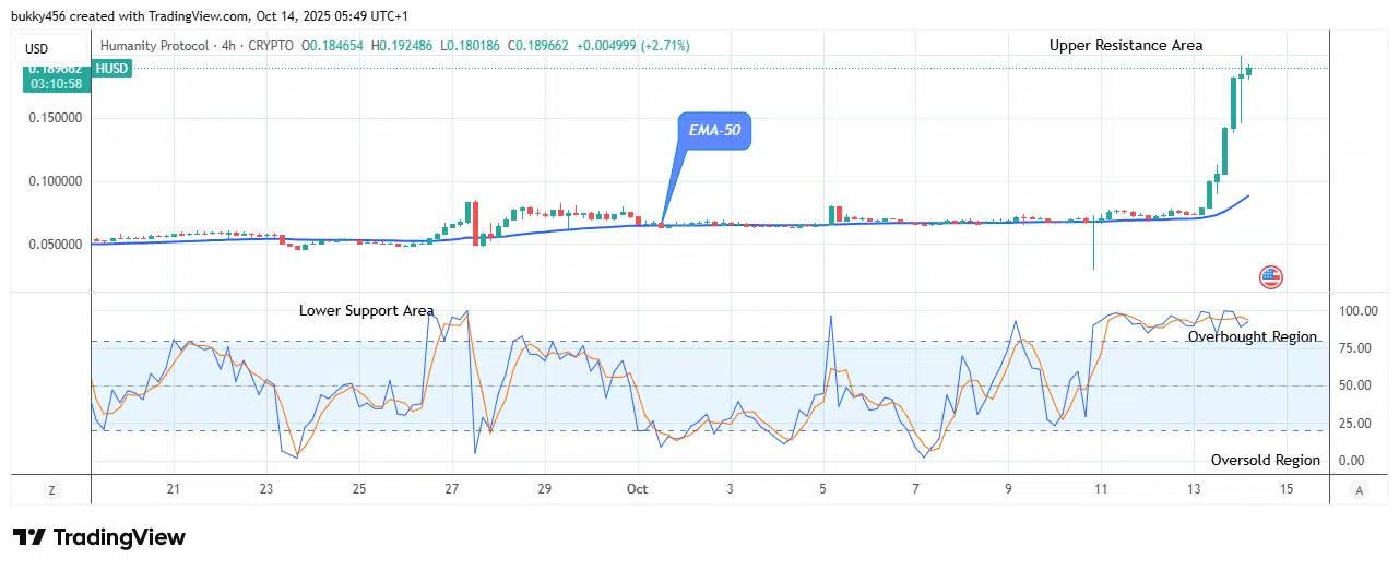 The long-term investors’ increase to a $0.192 supply value above the EMA-50 shortly after the 4-hourly chart opens today indicates that Humanity Protocol buyers are actually engaging in the coin investment.