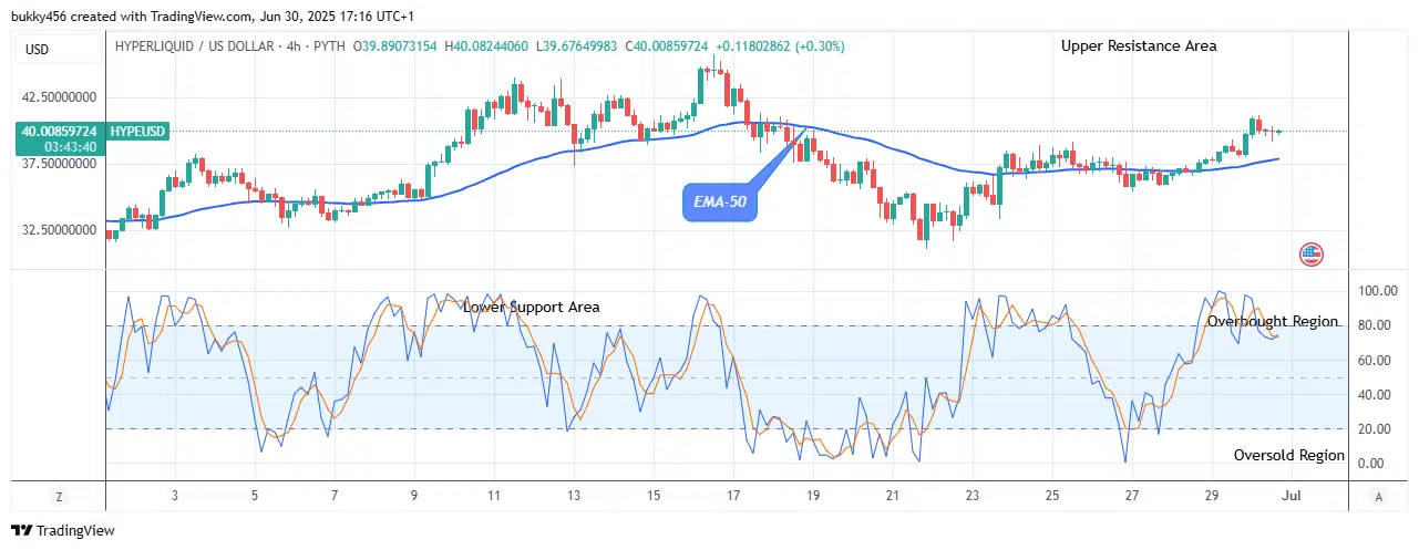 Today, the Hyperliquid price asserts a new bullish cycle at the $40.06 mark above the EMA-50, indicating upward momentum in the context of the market strength, providing buyers with a solid entry point.