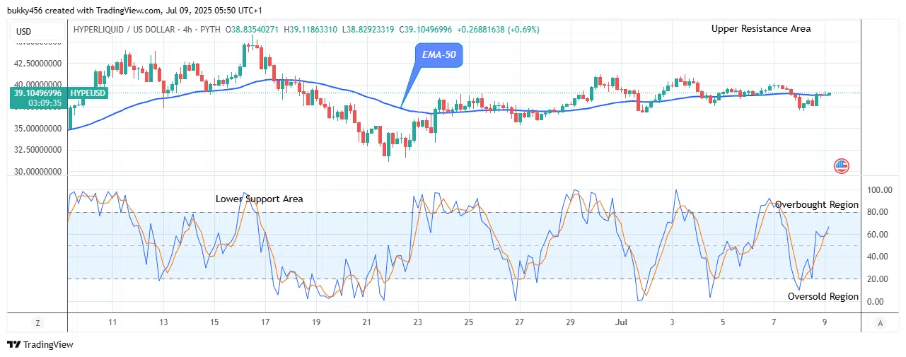 The HYPEUSD pair denotes a bullish posture in its medium-term view. The price is above the EMA-50, indicating an upward momentum and the high impact of buyers in the market.