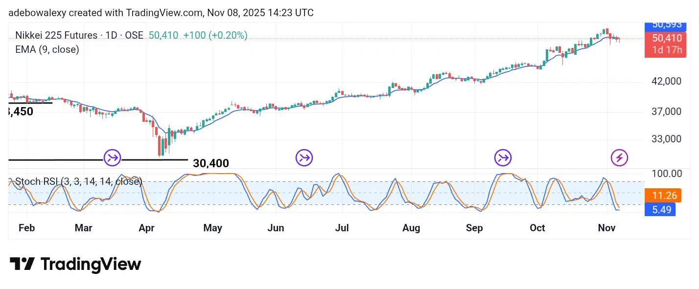 NIKKEI Price Hovers Below the 9-Day EMA