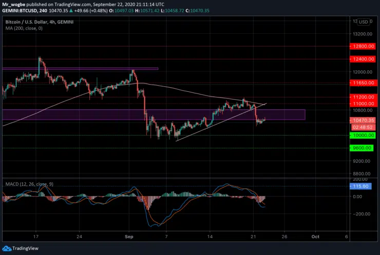 At press time, Bitcoin trades at $10,511, about 0.8% increase in the day. However, it remains trapped in its weekly consolidation range.